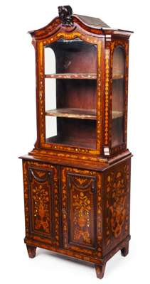 DUTCH WALNUT AND MARQUETRY DISPLAY CABINET