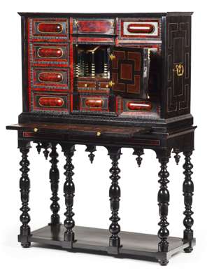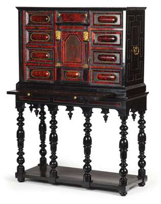 FLEMISH EBONY, TORTOISESHELL AND IVORY GILT METAL MOUNTED CABINET ON STAND Y