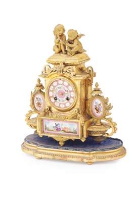 FRENCH GILT BRONZE AND PORCELAIN MOUNTED MANTEL CLOCK