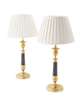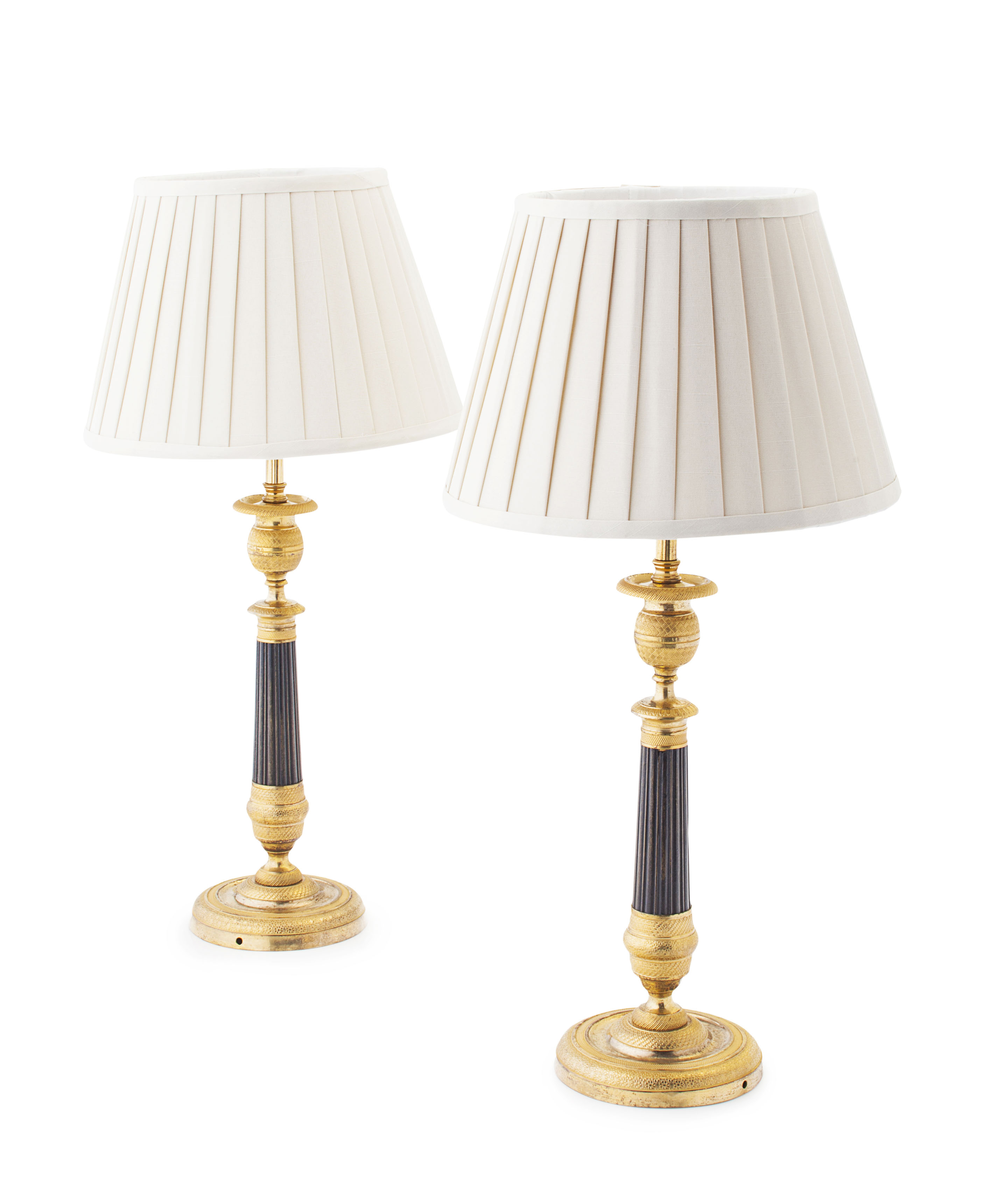 PAIR OF RESTAURATION PATINATED AND GILT METAL LAMPS