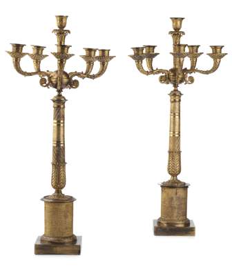 PAIR OF FRENCH EMPIRE GILT METAL CANDELABRA