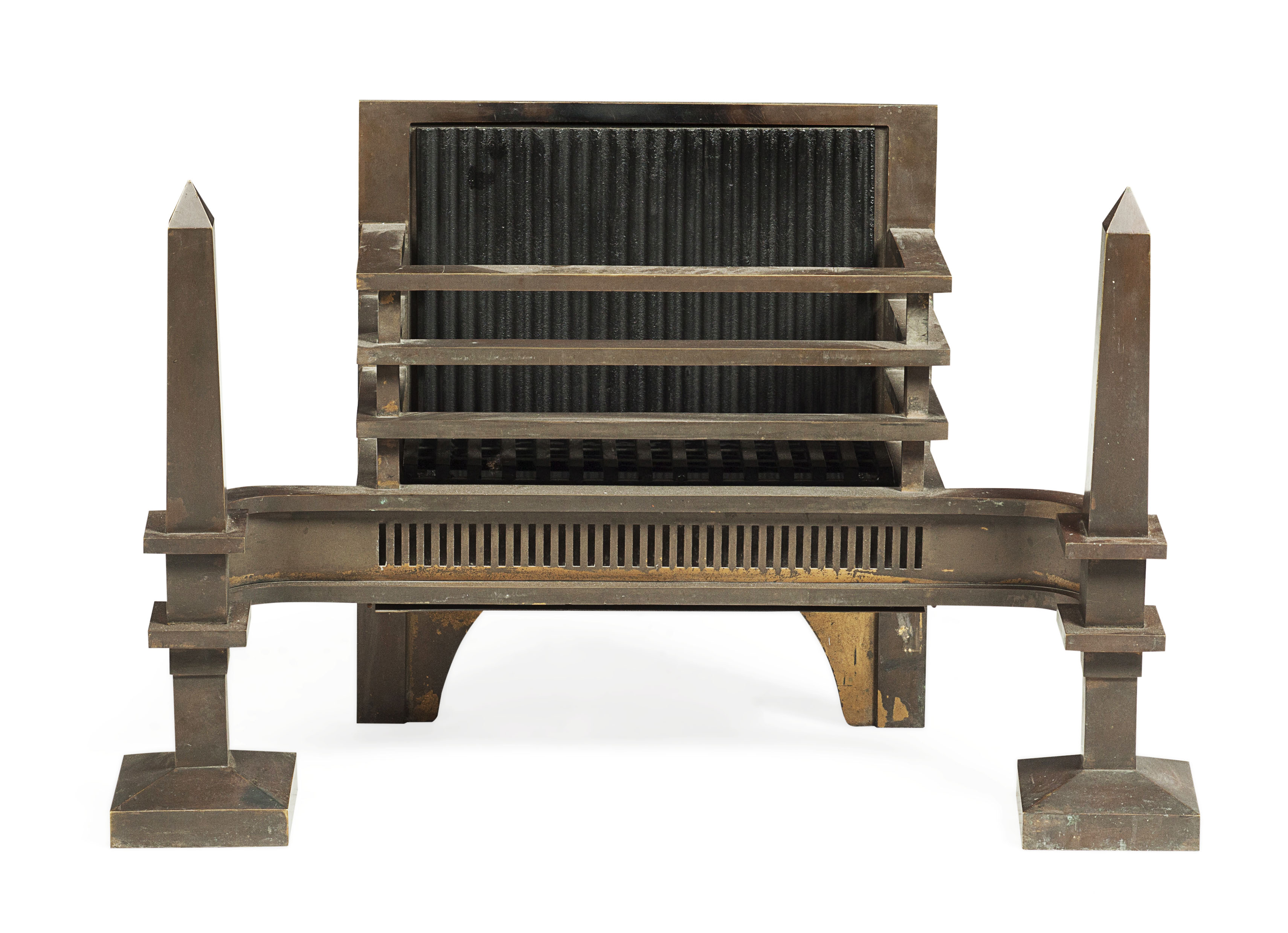 EGYPTIAN REVIVAL BRONZE AND IRON FIRE GRATE
