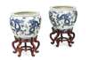 PAIR OF LARGE CHINESE BLUE AND WHITE JARDINIERES ON STAND