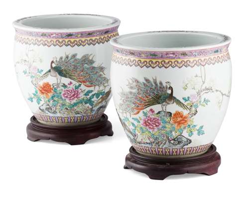 PAIR OF CHINESE FAMILLE ROSE JARDINIERES