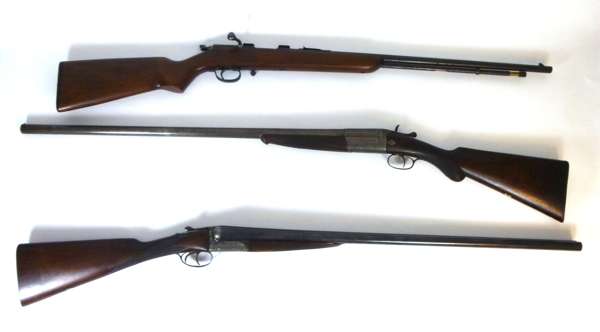 the walnut stock chequered at the hand, fore-end and butt, signed on the top rib, nitro proof, chambered for 3 ¼ inches, serial number 134204, barrel 71cm long; together with a 12 BORE BOXLOCK EJECTOR SIDE BY SIDE SPORTING SHOTGUN, BY WEBLEY AND SCOTT, serial number 127474, barrel 76cm long; a .22 BOLT ACTION SINGLE BARREL RIFLE, BY REMINGTON; and a 12 BORE SINGLE BARREL HAMMER GUN, BY MIDLAND GUN CO. (4)