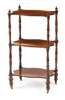 with three serpentine tiers raised and divided by turned supports, on brass casters