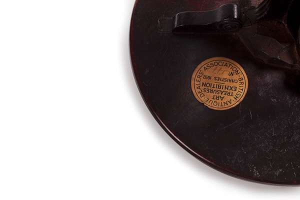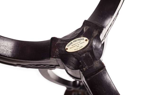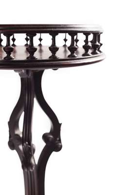 the circular top with a gallery rail on fluted and acanthus carved C-scroll supports raised on a cabriole legs carved with acanthus and ending in scrolled toes, bearing a Frank Partridge ivorine trade plaque and BADA paper exhibition label dated 1932