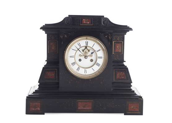EARLY VICTORIAN POLISHED SLATE AND MARBLE MANTLE CLOCK