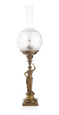 VICTORIAN BRASS FIGURAL OIL LAMP BY CORNELIUS, PHILADELPHIA