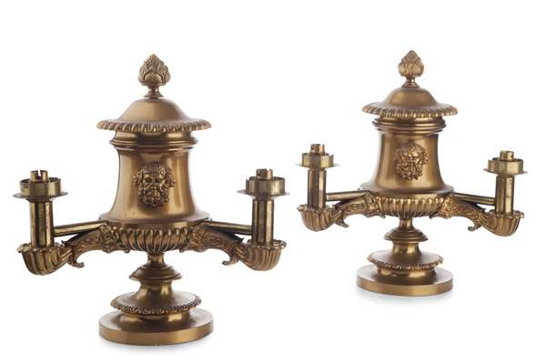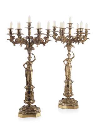 PAIR OF GILT BRONZE FIGURAL CANDELABRA BY CORNELIUS OF PHILADELPHIA