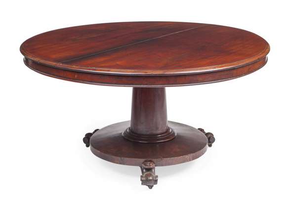 REGENCY STYLE MAHOGANY PEDESTAL DINING TABLE