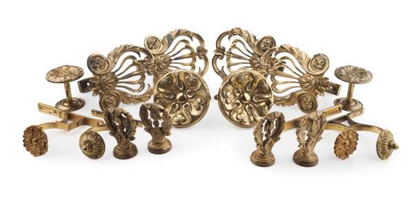 COLLECTION OF NEOCLASSICAL STYLE GILT METAL CURTAIN AND DRAPERY ACCESSORIES