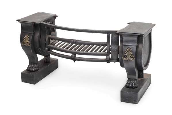 REGENCY CAST IRON FIRE GRATE IN THE MANNER OF GEORGE BULLOCK