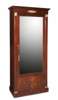 the plain cornice above a mirrored door flanked by pilasters, above a base drawer