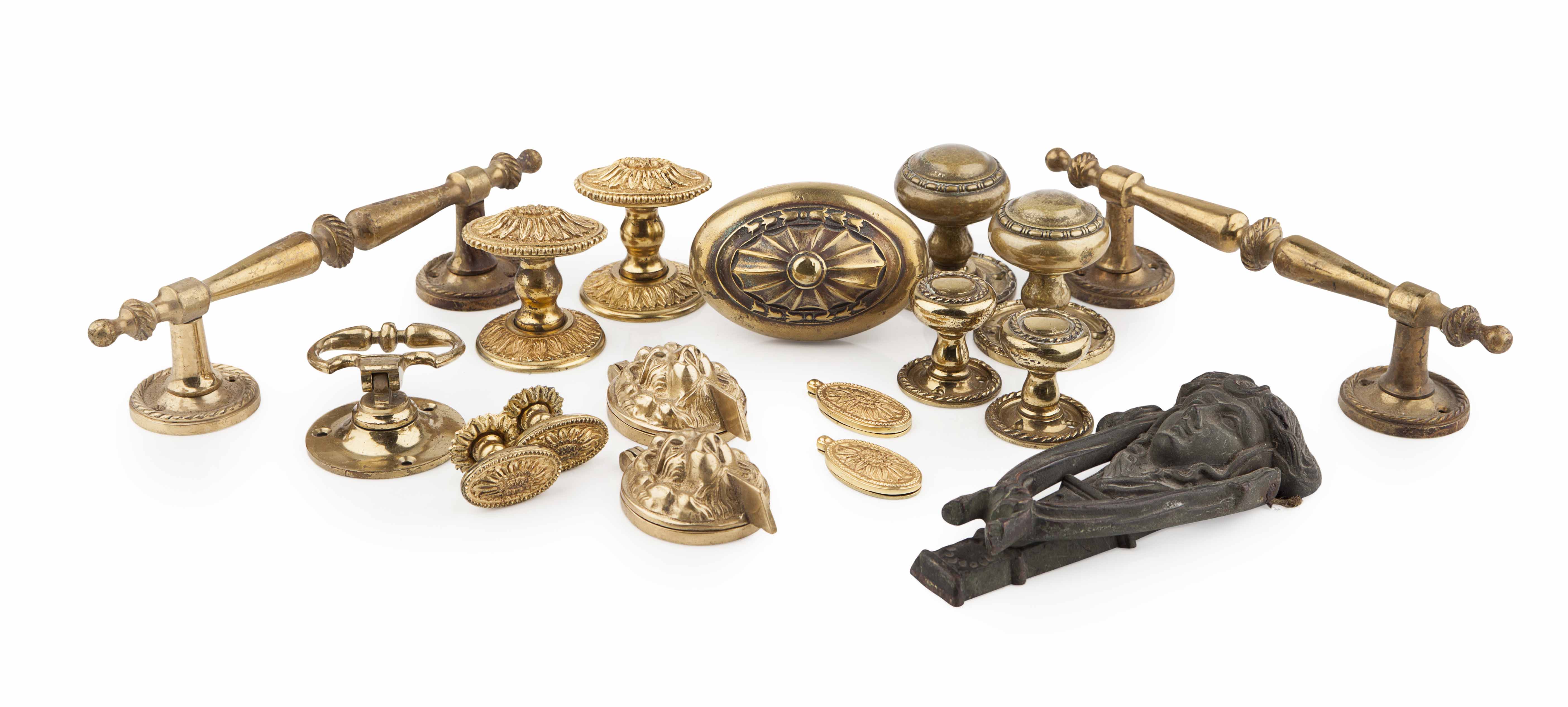 COLLECTION OF NEOCLASSICAL STYLE GILT METAL DOOR ACCESSORIES