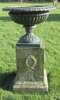 Urn 40cm high, 52cm diameter; plinth 52cm high