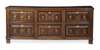 the long rectangular moulded top above six short panel moulded drawers, raised on block feet