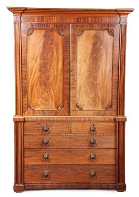 GOOD SCOTTISH REGENCY MAHOGANY LINEN PRESS, BY WILLIAM DOW, PERTH