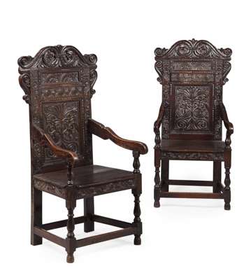 PAIR OF CHARLES II STYLE OAK ARMCHAIRS