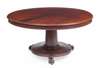 the moulded circular tilt top over a large cylindrical column raised on a spreading circular platform and raised on scroll carved feet