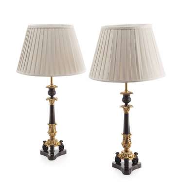 PAIR OF REGENCY PATINATED AND GILT BRONZE LAMPS