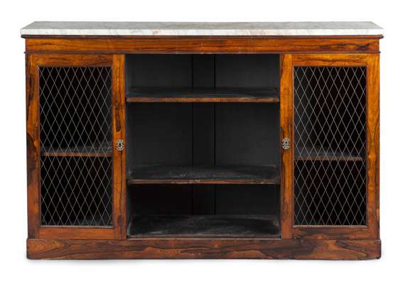 REGENCY ROSEWOOD AND MARBLE TOP LOW BOOKCASE