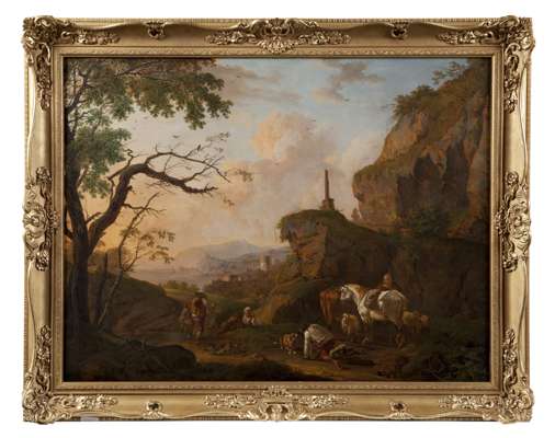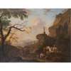 ITALIANATE LANDSCAPE WITH TRAVELLERS AND ANIMALS ON A WOODED PATH