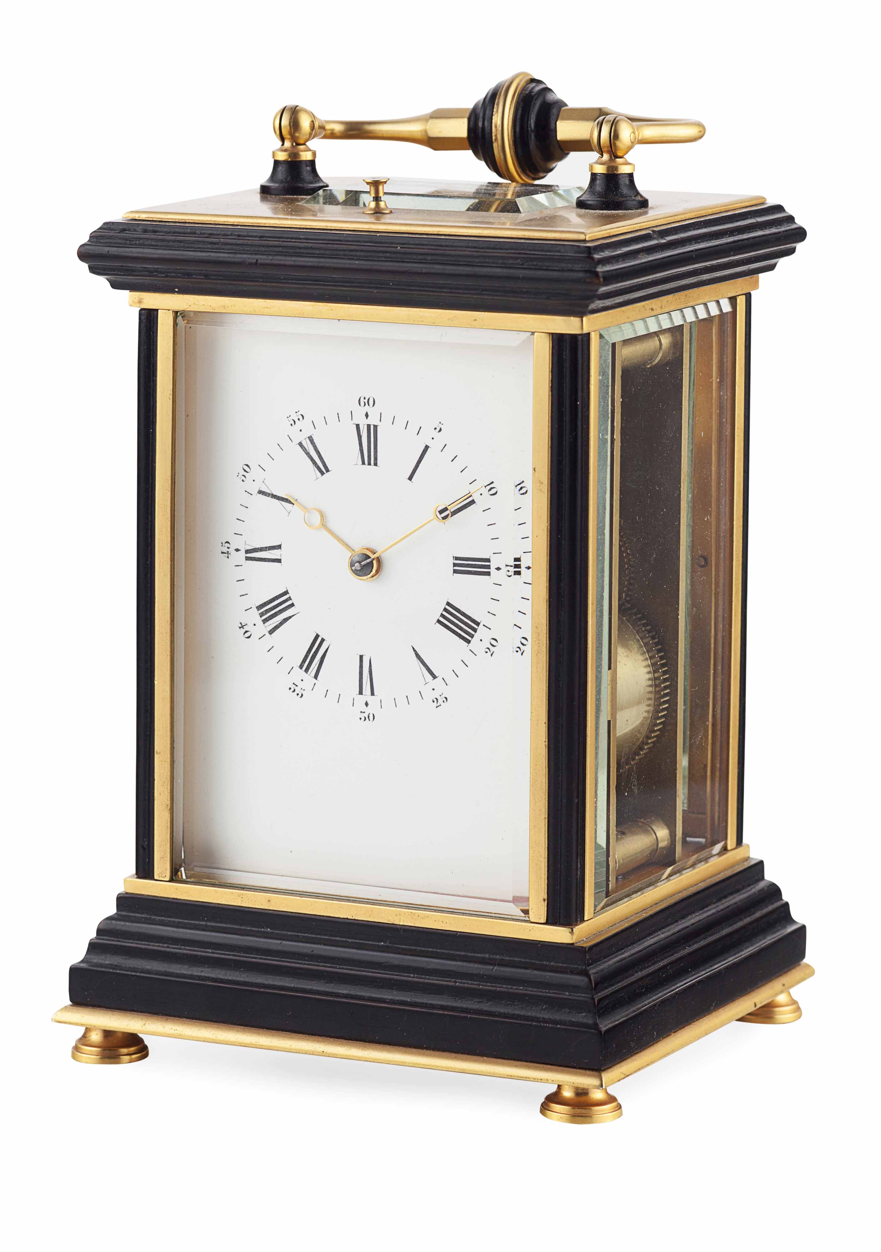 FINE FRENCH BRASS AND EBONY REPEATING CARRIAGE CLOCK