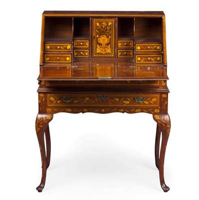 DUTCH WALNUT MARQUETRY BUREAU ON STAND