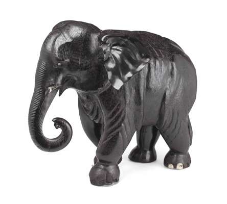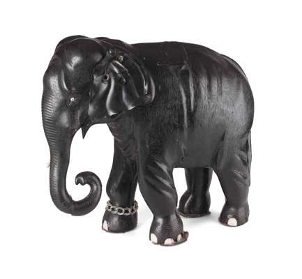 TWO LARGE INDIAN CARVED EBONY ELEPHANTS Y