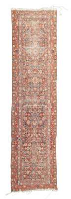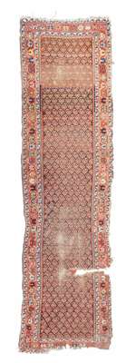 two similar with brown field with allover herati pattern, within red stylised vine border; and another with brown field with allover boteh pattern, within red vine border (worn) (3)