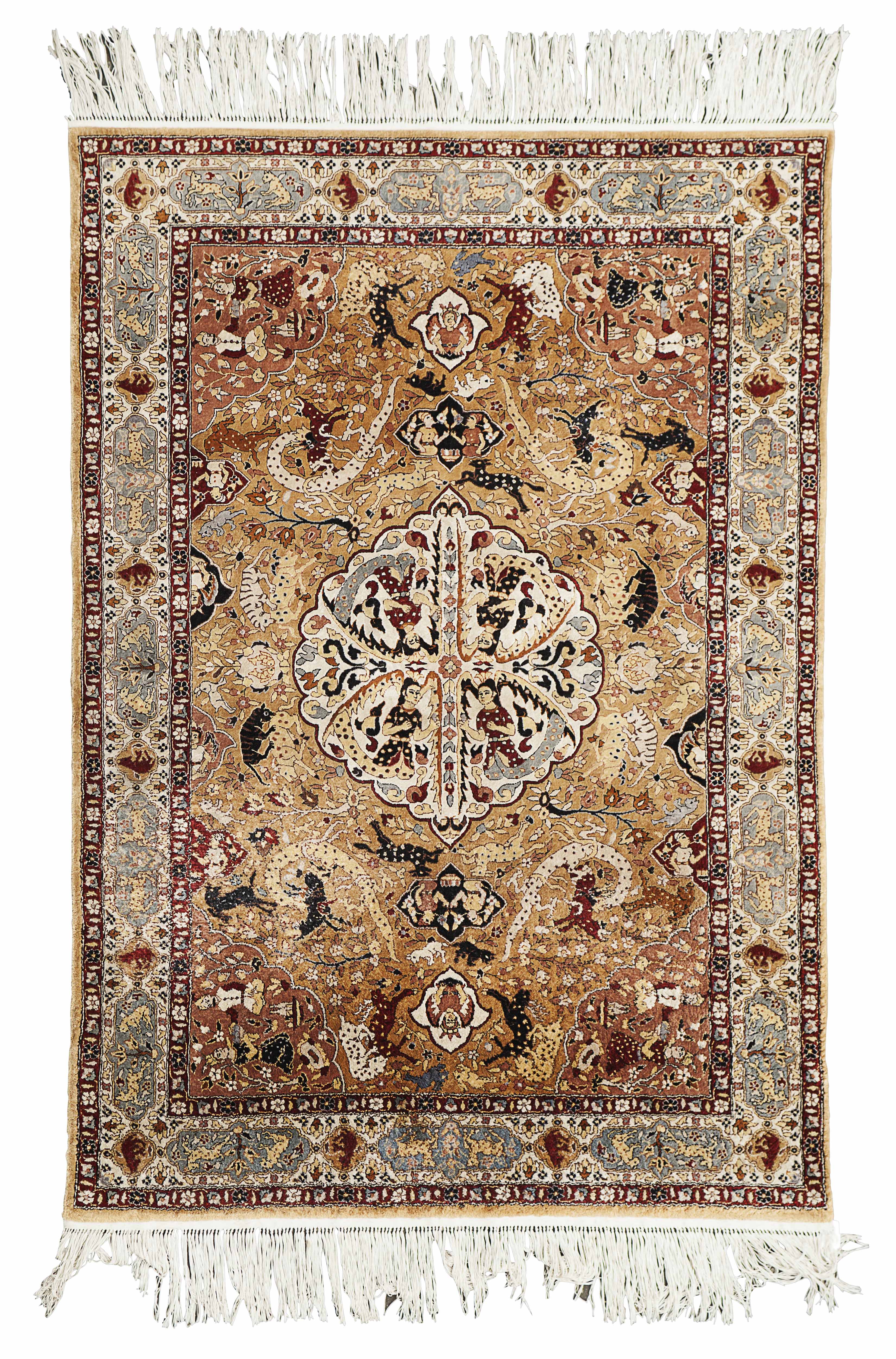 CENTRAL PERSIAN SILK 'HUNTING' RUG