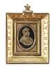 mounted on a black oval ground, in a gilt and gesso slip and moulded frame