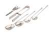 comprising a pair of salad servers, Sheffield, 1914, 29cm long; another pair of salad servers, Birmingham, 1913; 29cm long; an asparagus server, London, 1894, 26cm long; a pair of grape shears, monogrammed 'R', Sheffield, 1931 (6)