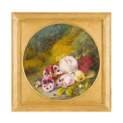 STILL-LIFE OF FLOWERS ON A GRASSY BANK