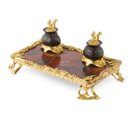 LOUIS XV STYLE LACQUER AND GILT BRONZE MOUNTED INKSTAND