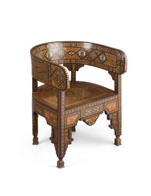 MIDDLE EASTERN INLAID CORNER ARMCHAIR