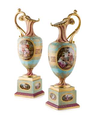 PAIR OF VIENNA PORCELAIN EWERS ON STANDS