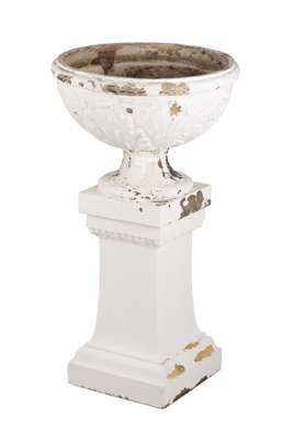 LARGE DOULTON PAINTED STONEWARE URN ON PEDESTAL