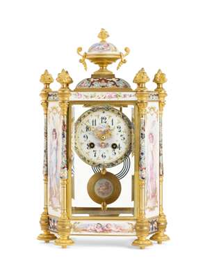FRENCH LÉVY FRÈRES ORMOLU AND PORCELAIN MOUNTED MANTEL CLOCK