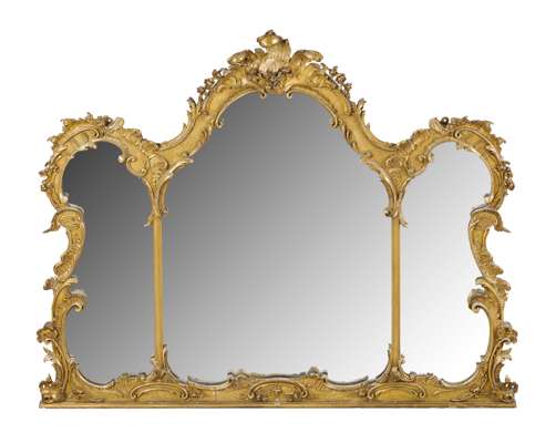 PAIR OF CONTINENTAL GILTWOOD AND GESSO OVERMANTEL MIRRORS