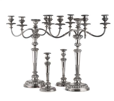 PAIR OF GEORGIAN STYLE SILVERPLATED CANDELABRA