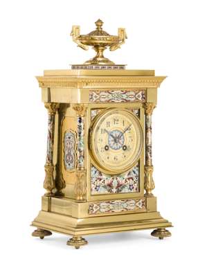 FRENCH CLOISONNÉ AND PORCELAIN MOUNTED MANTEL CLOCK