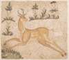 of rectangular outline, depicting a leaping deer against a cream ground with stylised plants