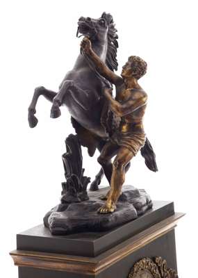FRENCH GILT AND PATINATED METAL 'MARLY HORSE' MANTEL CLOCK