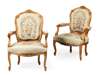 PAIR OF LOUIS XV STYLE WALNUT NEEDLEWORK UPHOLSTERED FAUTEUILS