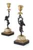 PAIR OF FRENCH GILT AND PATINATED BRONZE FIGURAL CANDLESTICKS