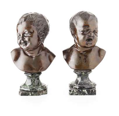 PAIR OF BRONZE BUSTS OF INFANTS, AFTER FRANZ XAVER MESSERSCHMIDT