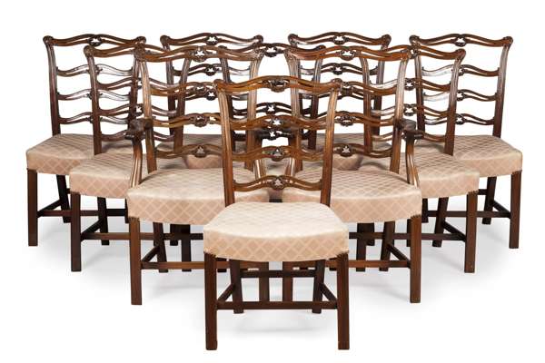 SET OF TEN GEORGE III STYLE MAHOGANY DINING CHAIRS