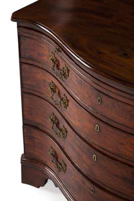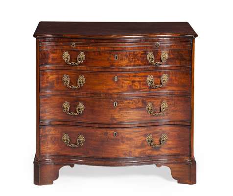 FINE GEORGE III FIGURED MAHOGANY SERPENTINE CHEST OF DRAWERS